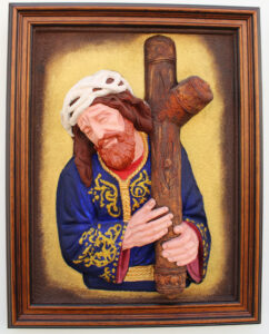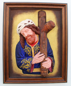 Ακρυλικά σπρέι πάνω σε ξύλινη κορνίζα “ Ayious-wood ” με πολυστερίνη και ακρυλικές μπογιές